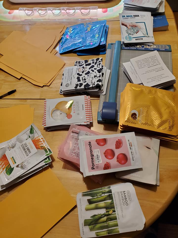 One set of sheet masks made its way to France, four were porch-dropped to friends and I kept two sets — one for me and one for my husband, who was an invaluable supporter of my mess and creative process.